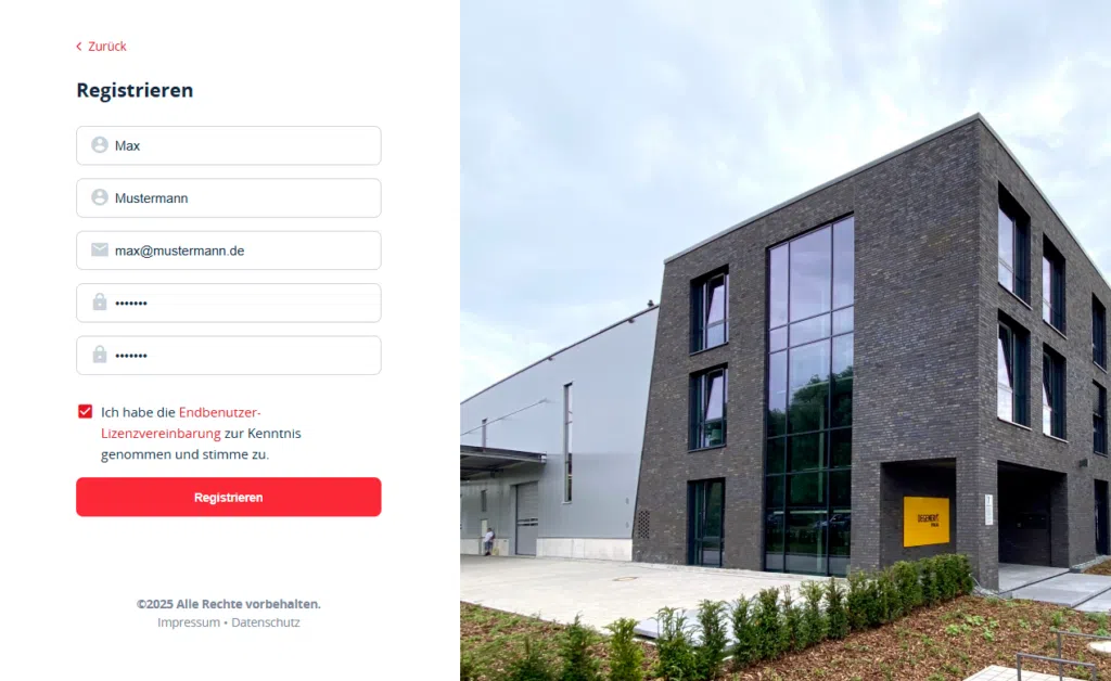 2. Klicken Sie zunächst auf „Registrieren“, um Ihr neues Benutzerkonto anzulegen: