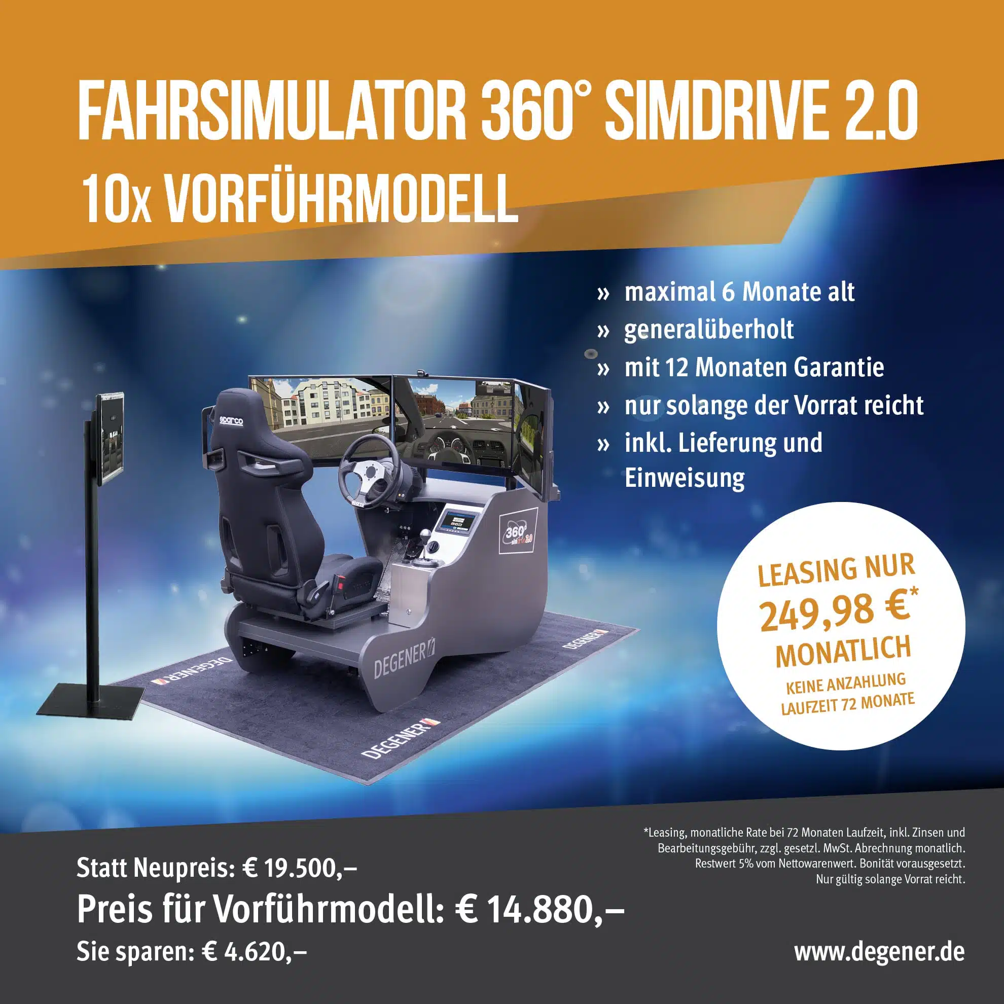 Niemand nimmt gern die 2. Wahl, wenn er auch die 1. haben kann: Gerade, wenn die Ausbildung jetzt zügig erledigt werden soll, werden alle Beteiligten eine solide Ausstattung begrüßen. Dazu gehört neben modernen Fahrzeugen und Unterrichtsräumen in einer gut ausgestatteten Fahrschule auch ein qualitativ hochwertiger Simulator, dem die Lehrenden wie auch die Lernenden eine zielgerichtete Ausbildung zutrauen. Der DEGENER Fahrsimulator 360° simdrive 2.0 bietet so eine professionelle Ergänzung zum Fahrlehrerteam. Unser virtueller Fahrlehrer ist immer geduldig mit den Fahranfängern. Er weist sie ohne Rücksicht auf Arbeitszeitvorgaben selbstständig in die „Geheimnisse“ des Autofahrens ein. Dabei ist er überaus genügsam, leicht zu reinigen, passt sich jedem Hygienekonzept problemlos an und arbeitet auch, wenn sonst kein praktischer Unterricht stattfindet und nur das Büro geöffnet ist.