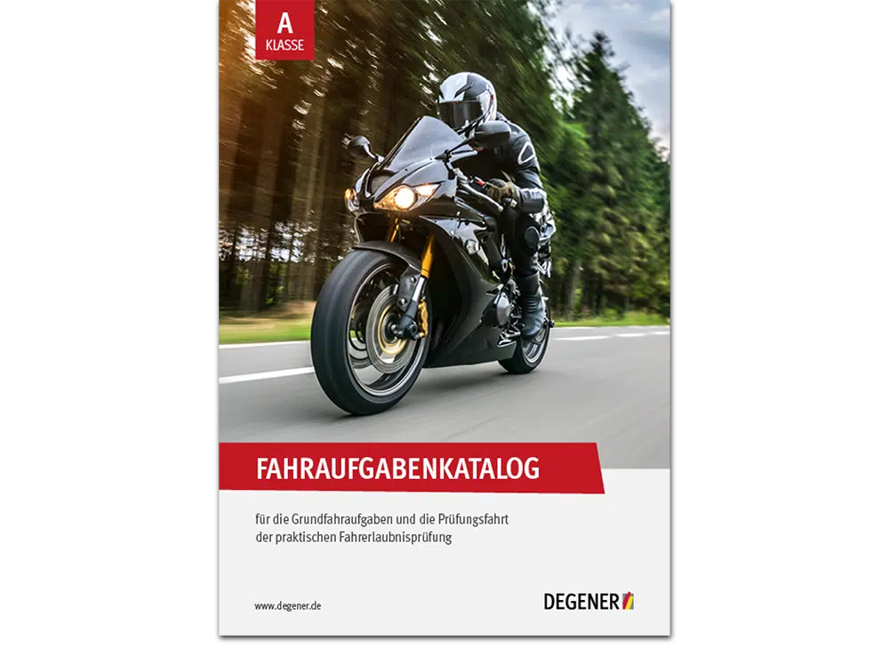 Im DEGENER Fahraufgabenkatalog für Klasse A (inklusive A2, A1 und AM) haben wir für Sie alle Anforderungsstandards und Bewertungskriterien sowohl für die Grundfahraufgaben als auch für die Fahraufgaben der praktischen Fahrerlaubnisprüfung auf eine Art zusammengefasst, die den Schwerpunkt auf Übersichtlichkeit der amtlichen Textfassung legt. Hier finden Sie sich schnell zurecht. Mit dem nächsten Update der DEGENER Unterrichtssoftware SCAN & TEACH können Sie auch während des Unterrichts auf die Inhalte und Kriterien der Fahraufgabenkataloge intensiv eingehen.
