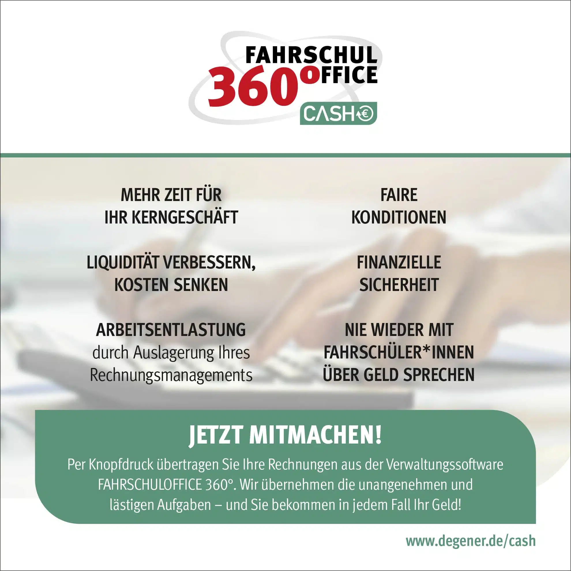 FAHRSCHULOFFICE 360° CASH ÜBERNIMMT
