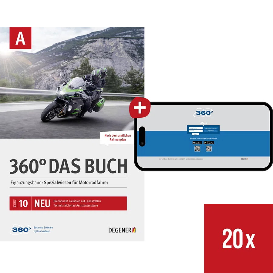 - Lehrbuch „360° Das Buch Motorrad fahren“ (Art.Nr. 11141)