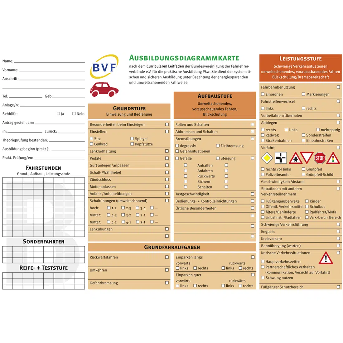 Ausbildungsdiagrammkarten Klasse B, zu 50 Stück gebändelt