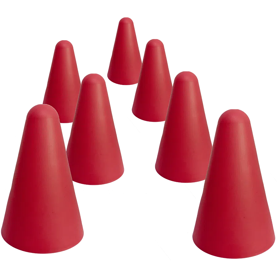Einfarbiger Leitkegel (rot) ohne Bodenplatte aus flexiblem Material (PVC), Höhe: 17 cm.