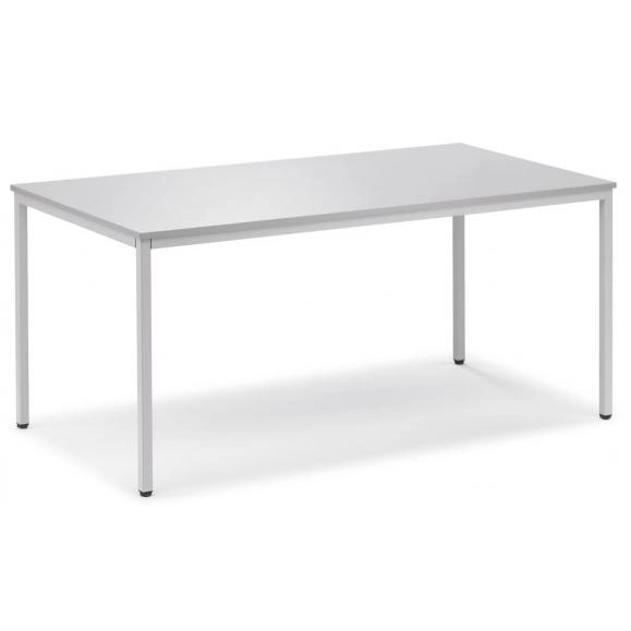 Konferenz-/Besprechungstisch – Lichtgrau RAL 7035, Plattenstärke 19 mm, stabiles Vierkantstahlrohr 30 x 30 mm, Materialstärke 2 mm, Bodenausgleichsschrauben, Maße: 720 x 1600 x 800 mm