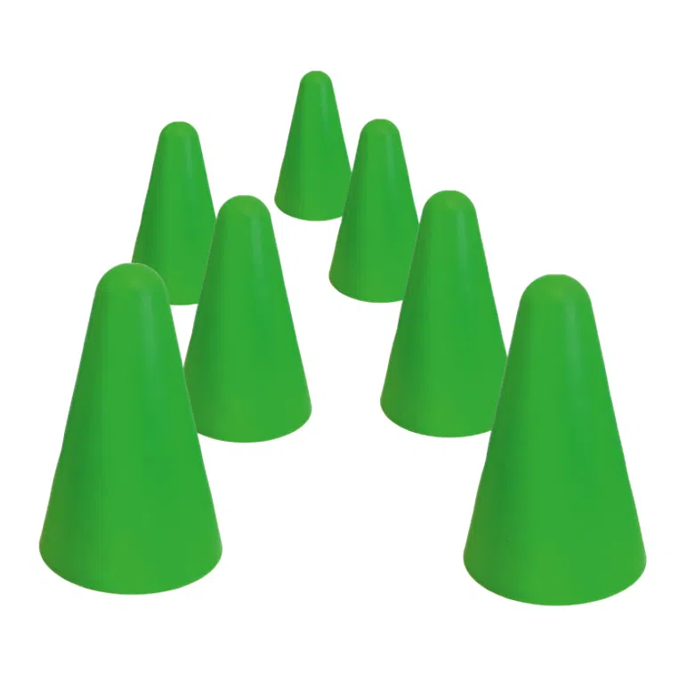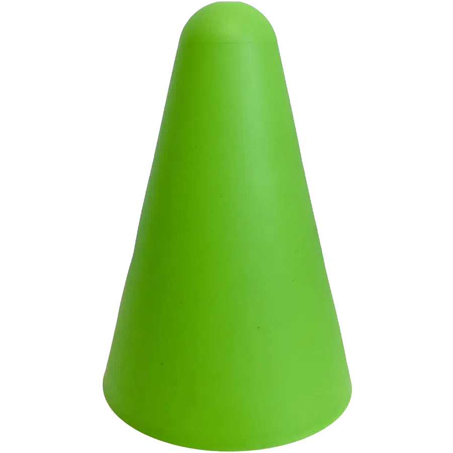 Einfarbiger Leitkegel (leuchtgrün) ohne Bodenplatte aus flexiblem Material (PVC), Höhe: 17 cm.