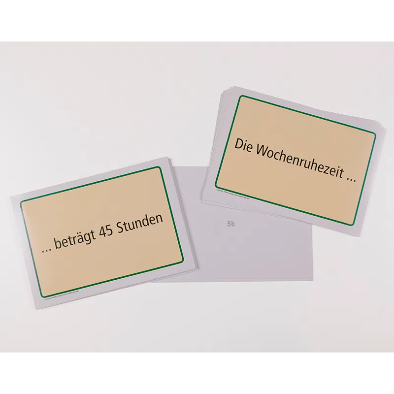 Auf 32 Moderationskarten befinden sich jeweils auf zwei Karten wichtige Aussagen / Abbildungen zu dem Thema „Lenk- und Ruhezeiten“.