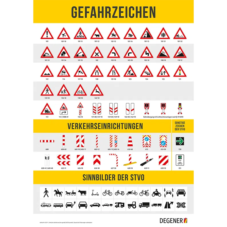 Poster „Gefahrzeichen, Verkehrseinrichtungen, Sinnbilder der StVO“, DIN-A1