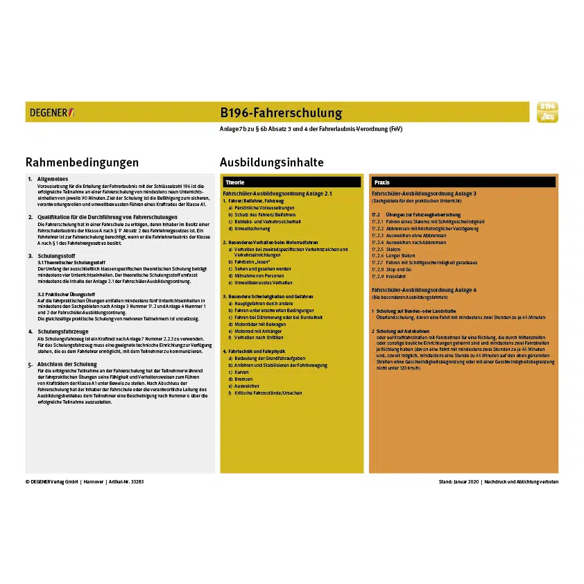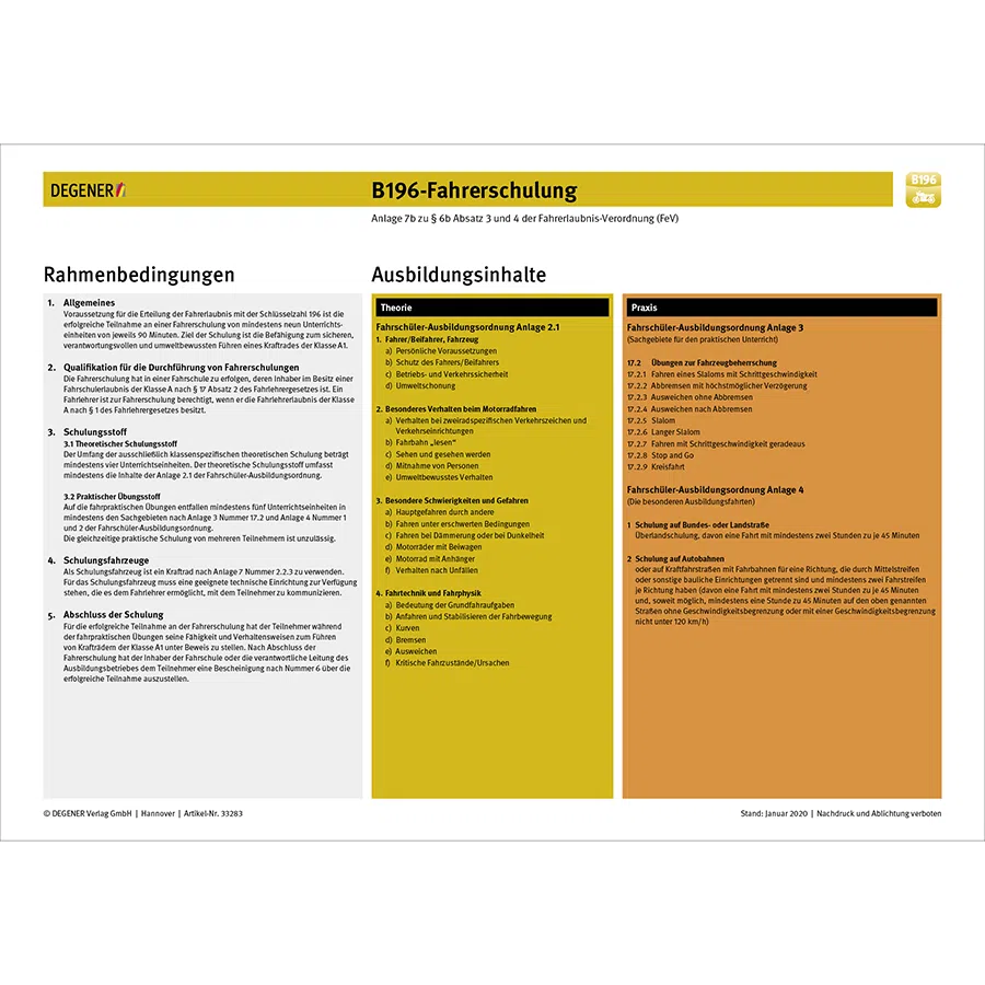 Rahmenplan B196 – per Aushang in Ihrer Fahrschule machen Sie ihre Leistungen transparent.