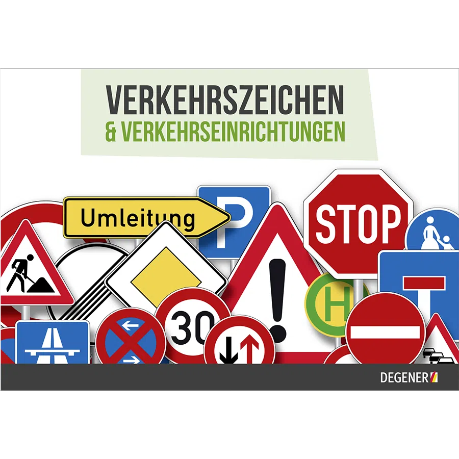 Kompakte Ansicht aller Verkehrszeichen, inklusive der Faustformeln für die Berechnung von Reaktionsweg, Bremsweg und Anhalteweg.