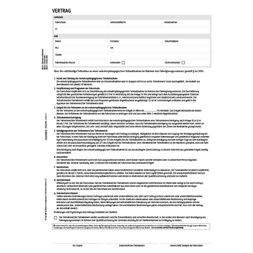 Vertrag für FES (Fahreignungsseminar), Block zu je x Stück