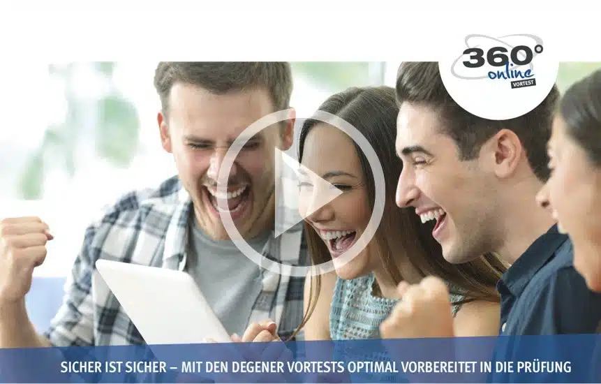Viele Fahrschüler haben es eilig, wenn es um ihre theoretische Ausbildung geht. Aber oft sind sie zu schnell der Meinung, dass sie reif sind für die Prüfung. Und davon lassen sie sich nicht so leicht abbringen … Doch vor den Preis haben die Götter den Schweiß gesetzt. Und davon, wie ernst Ihre Schüler die Vorbereitungen bisher genommen haben, können Sie sich in der Fahrschule schnell und direkt überzeugen. Laut Gesetz müssen Sie das sogar: „(1) Der Fahrlehrer darf die theoretische und die praktische Ausbildung erst abschließen, wenn der Bewerber den Unterricht im gesetzlich vorgeschriebenen Umfang absolviert hat und der Fahrlehrer überzeugt ist, dass die Ausbildungsziele nach § 1 erreicht sind.“ (§ 6 FahrSchAusbO) Der DEGENER 360° online Vortest steht Ihnen zu genau diesem Zweck jederzeit online zur Verfügung und kann sofort durchgeführt werden: Die Prüfungssimulation wird live aus allen aktuell verfügbaren Fragen nach amtlicher Vorgabe zusammengestellt.– Das Ergebnis kann sofort überprüft werden. Besteht Ihr Schüler diesen Test problemlos, ist er oder sie offenbar bestens vorbereitet. Nur mit dem DEGENER 360° online Vortest führen sie Ihre Fahrschüler sicher zum Erfolg.