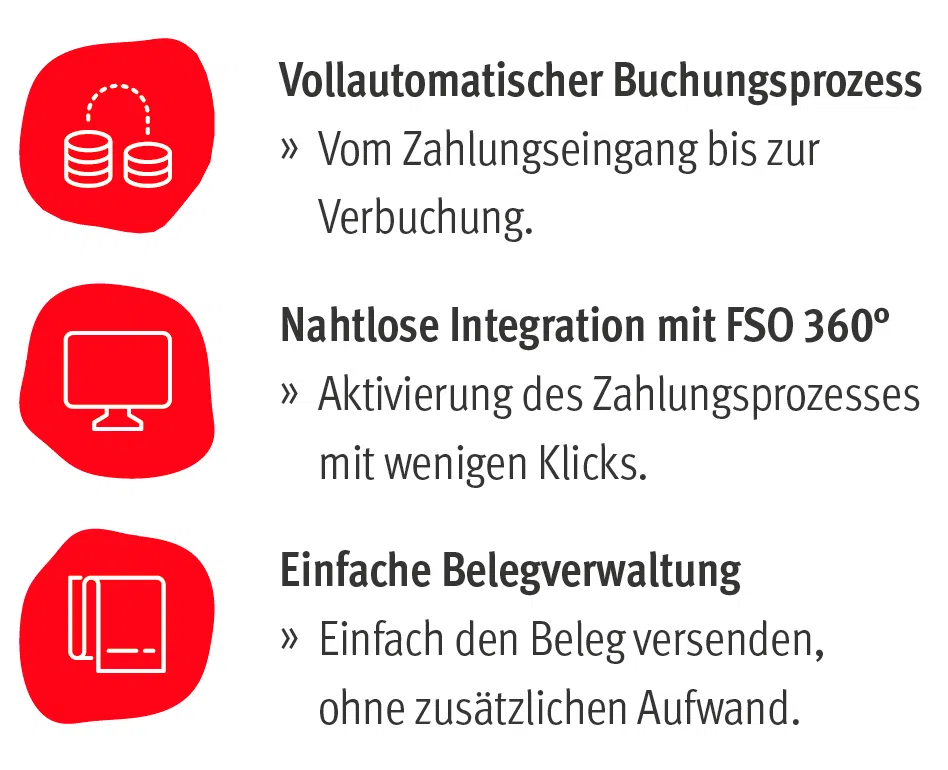 Mit den SumUp®-Terminals können Sie Zahlungen für Ihre Dienstleistungen bequem und sicher abwickeln. Nahtlos und effizient: FSO360° und SumUp® bieten die Möglichkeit des vollautomatischen Buchungsprozesses, beginnend beim Geldeingang, über die Zuordnung des Schülers, bis hin zur automatischen Verbuchung der Zahlung.